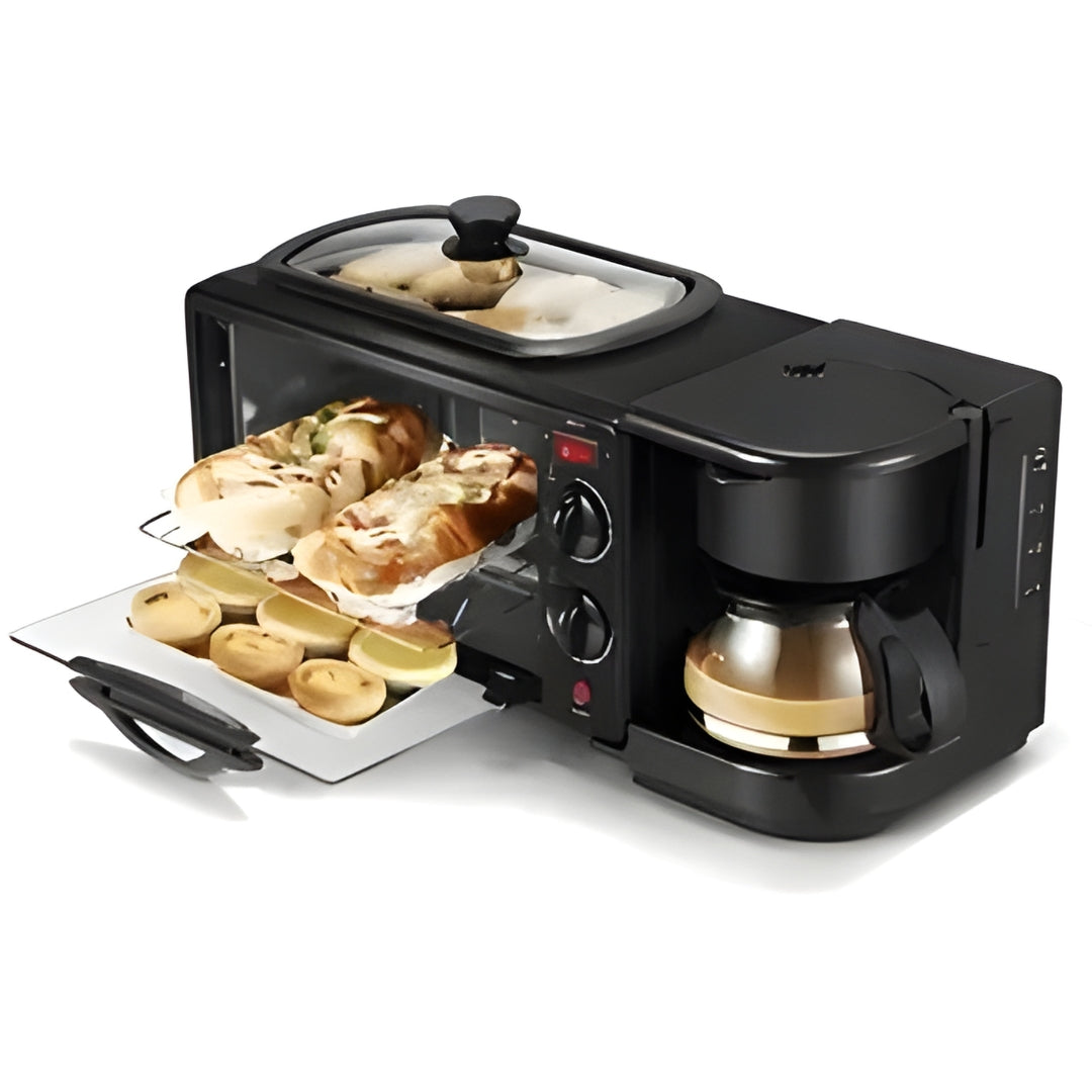 Descubre el increíble Horno Sokany 3 en 1, el aliado perfecto para tus mañanas. Este versátil electrodoméstico combina tostadora, cafetera y plancha en un solo equipo, permitiéndote preparar desayunos completos en minutos.